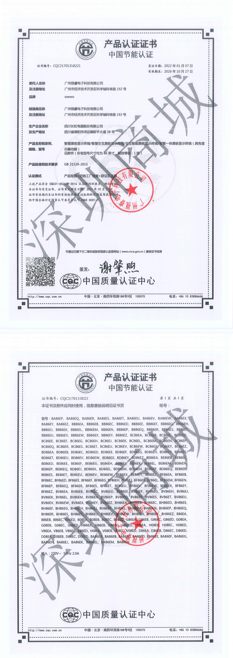触控一体机 | 希沃 BG98ED 98寸红外智慧黑板 |